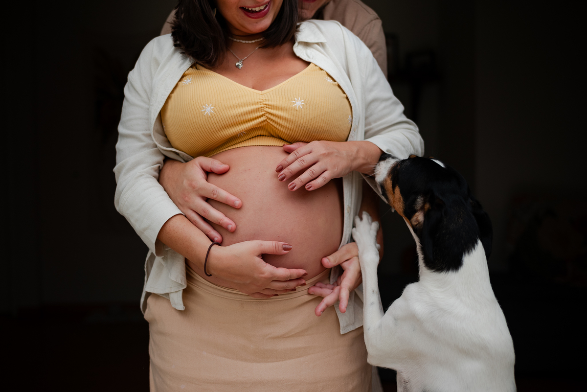 Ensaio gestante feito em casa em Nova Friburgo, região serrana do RJ.